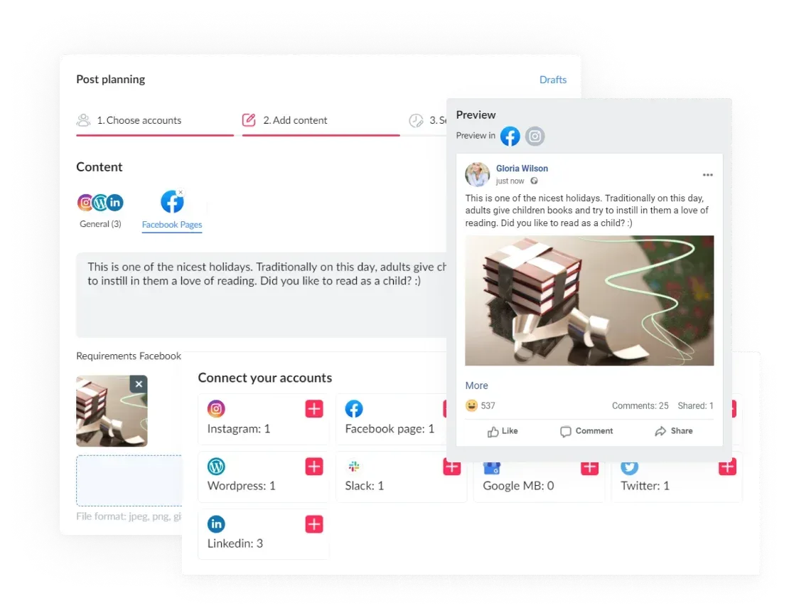 Social media management tools enable you to automate, analyze, better control, and dive deeper into your social media accounts. These apps can publish the same posts on all your social accounts and schedule future posts.